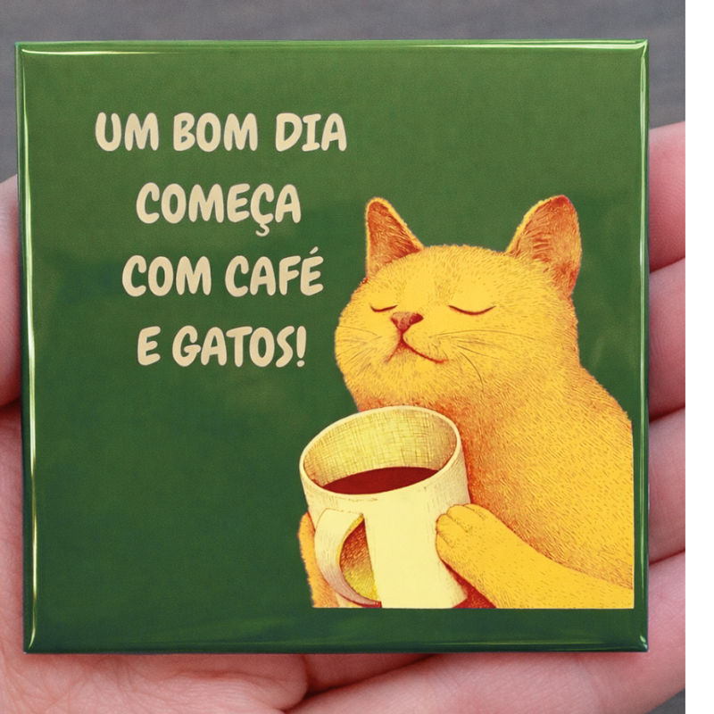 Ímã bom dia café e gatos