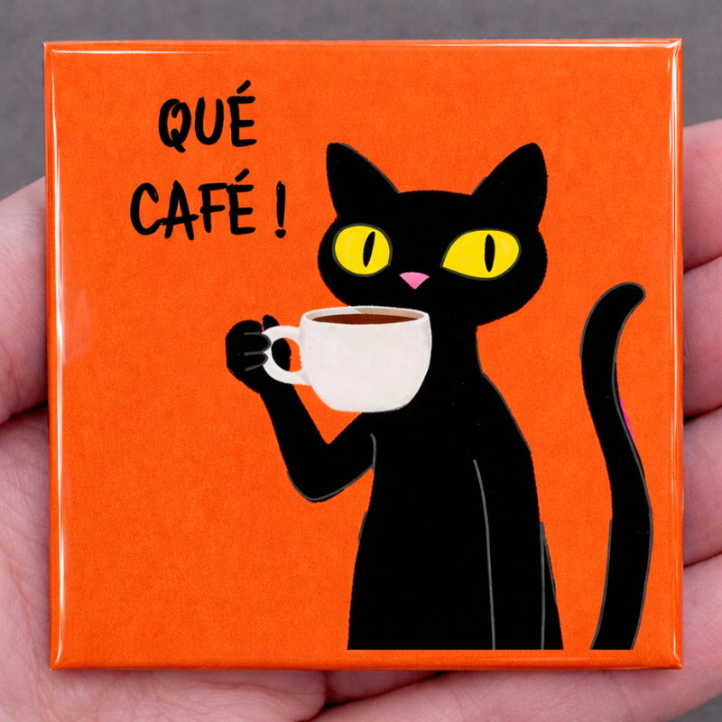 Ímã gatinho preto qué café!