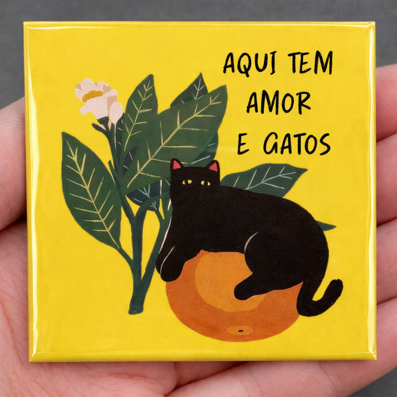 Ímã gatinho preto tem amor e gatos